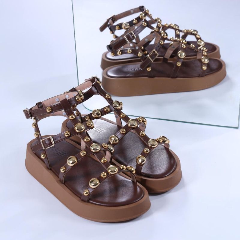 Sandália Feminina Papete Zariff com Maxi Esferas 2037-6488 Brown REF: 7700185132345