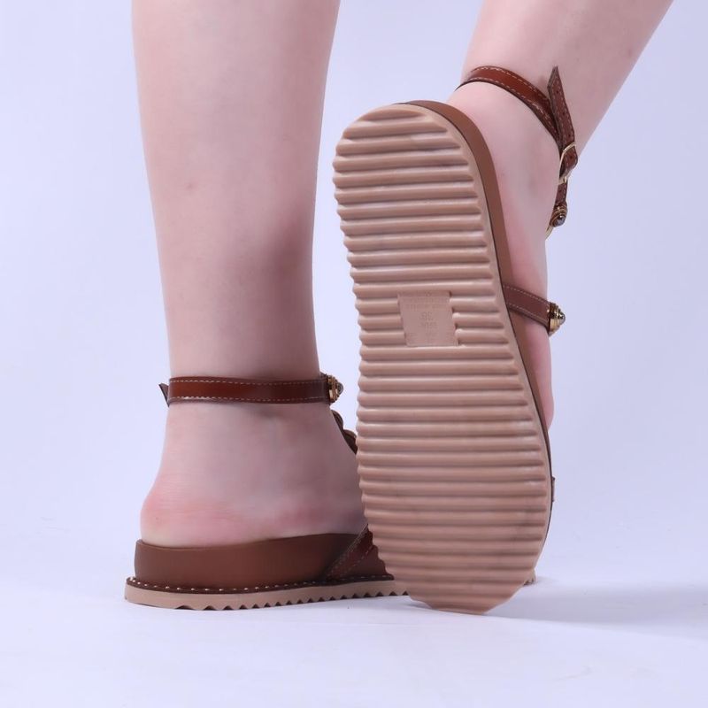 Sandália Papete Feminina Zariff Npv-401 Caramelo/Ouro REF: 7700184934353