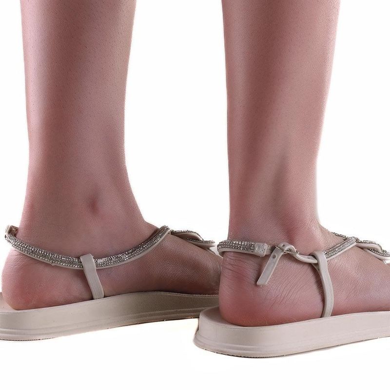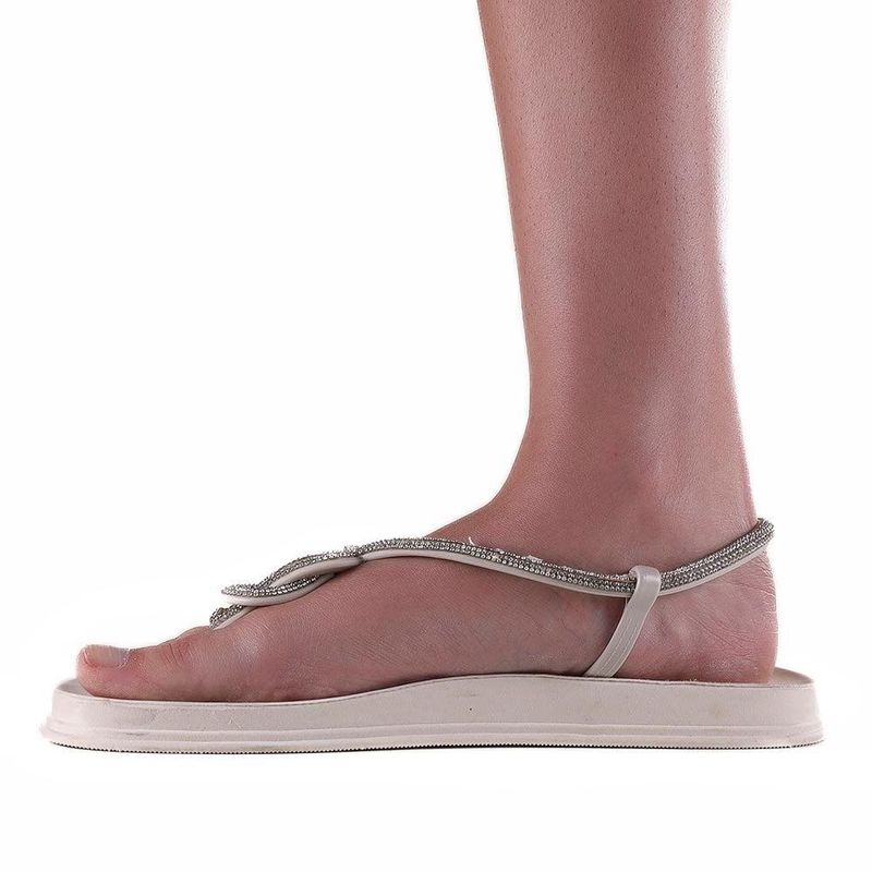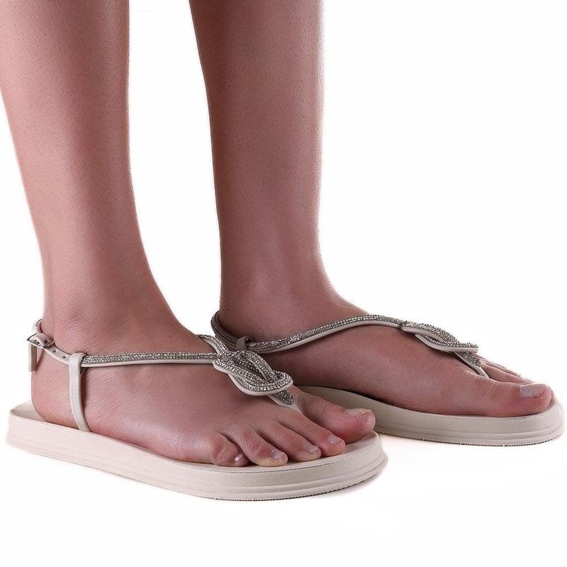 Sandália Rasteira Feminina Zariff Off White/Cristal REF: 378119_Sicredi