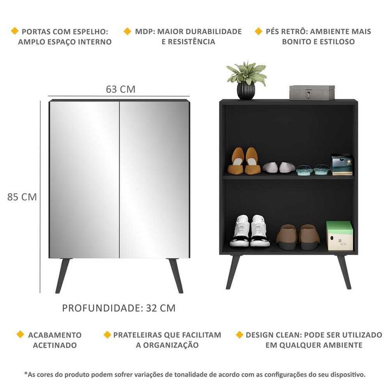 Casa e DecoraçãoMóveisSapateiraSapateira 2 Portas Retrô com Espelho Nina Multimóveis Preta