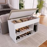 Casa e DecoraçãoMóveisSapateiraSapateira Baú Branca com Tampo Estofado Completa Móveis