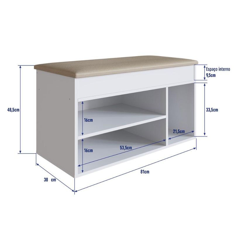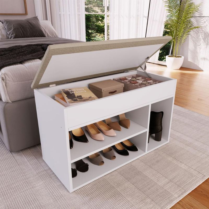 Sapateira Baú Branca com Tampo Estofado Completa Móveis REF: 7899671467884