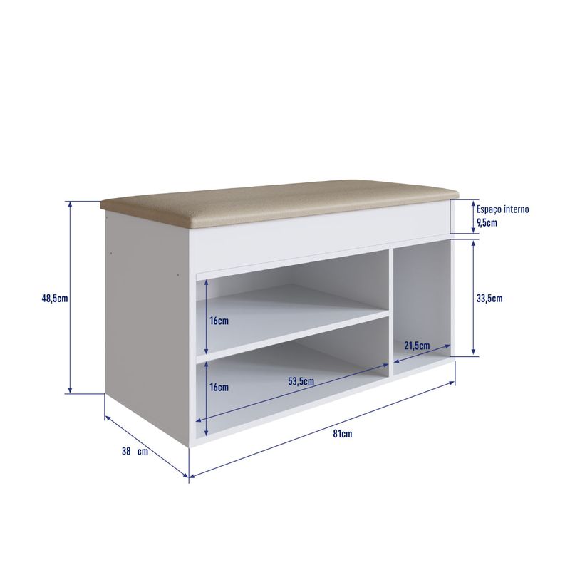 Casa e DecoraçãoMóveisSapateiraSapateira Baú com Tampo Estofado Completa Móveis Branco