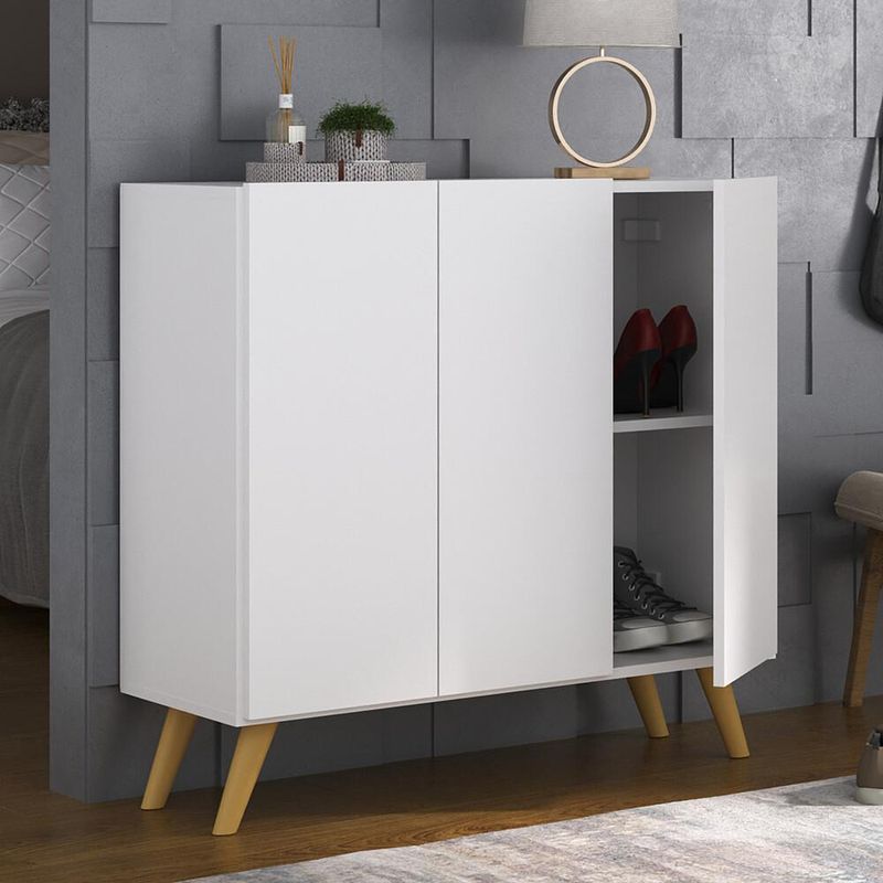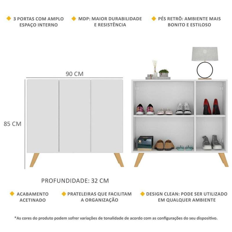 Sapateira Retrô 3 Portas Nina Multimóveis MP6018 Branca/Natural REF: 765923_Sicredi