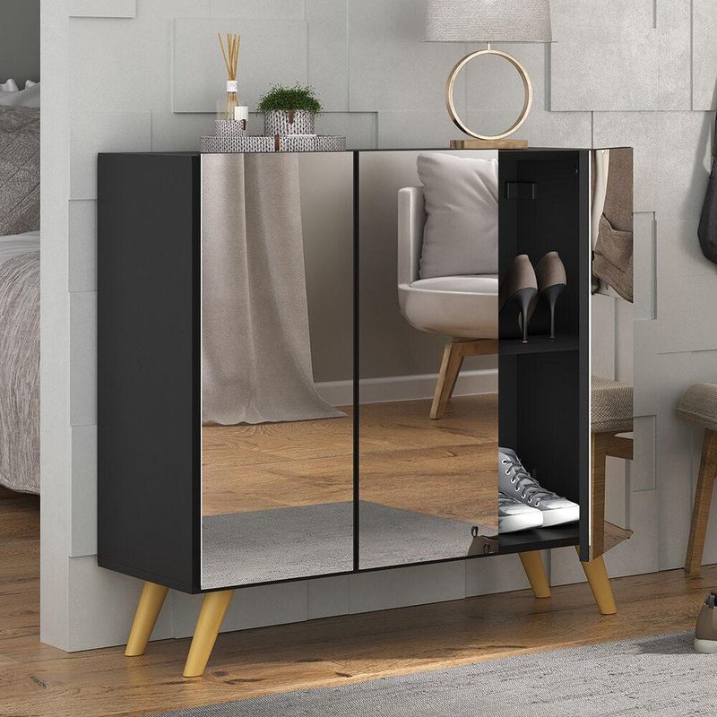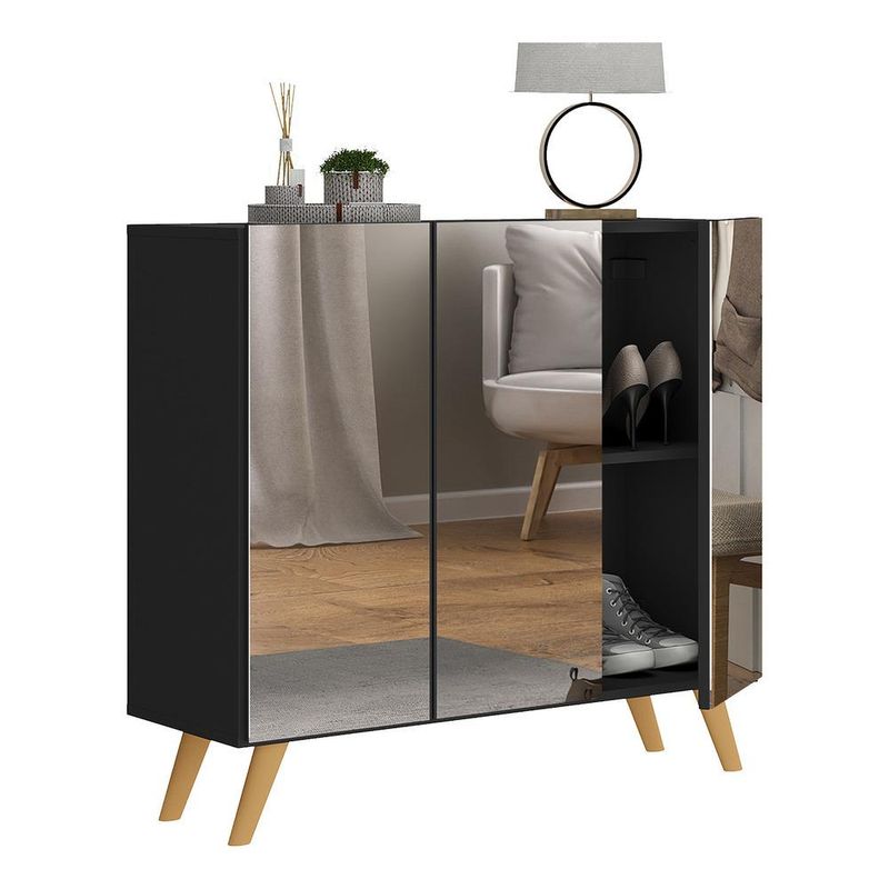 Casa e DecoraçãoMóveisSapateiraSapateira Retrô com Espelho 3 Portas Nina Multimóveis MP6022 Preta/Natural