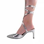 Scarpin Feminino Zariff Salto Fino Amarração Prata REF: 420229_Sicredi