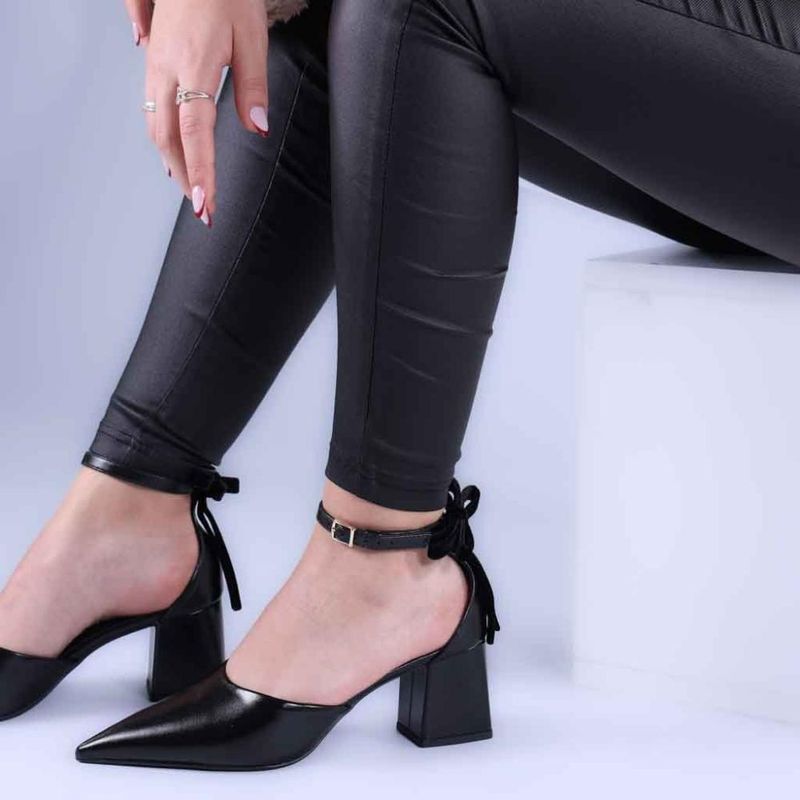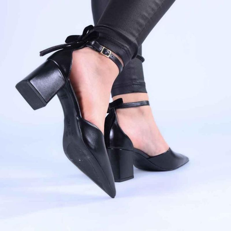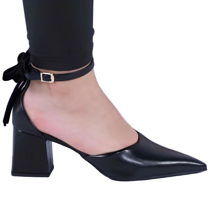 Scarpin Feminino Zariff com Salto Bloco e Laço de Veludo 1636-020 Preto REF: 7909947578296