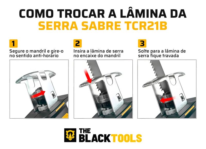 Serra Sabre Elétrica 02 Baterias 21v Profissional Portatil 3000 Rpm The Black Tools REF: 920691_Sicredi