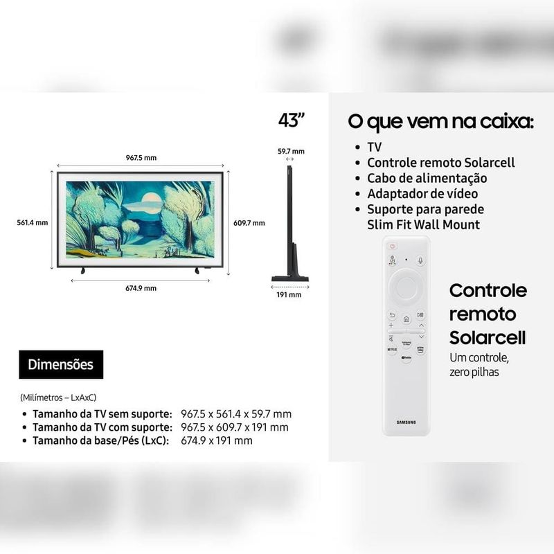 Eletrônicos e TecnologiaTV e VídeoSmart TVSmart TV 55 QLED 4k Samsung QN55LS03FAGXZD The Frame Vision AI 2025 Modo Arte Antirreflexo