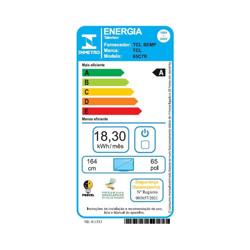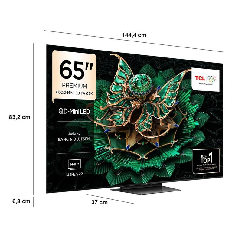 Smart TV 65 TCL 65C7K 4K QD-Mini Led 144Hz com Sistema Operacional Google TV REF: 7899968301846
