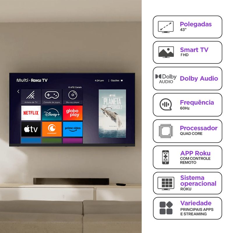 Smart TV DLED 43 FHD Multi Essencial Roku 3HDMI 2USB Wi-fi TL082 REF: 823253_Sicredi
