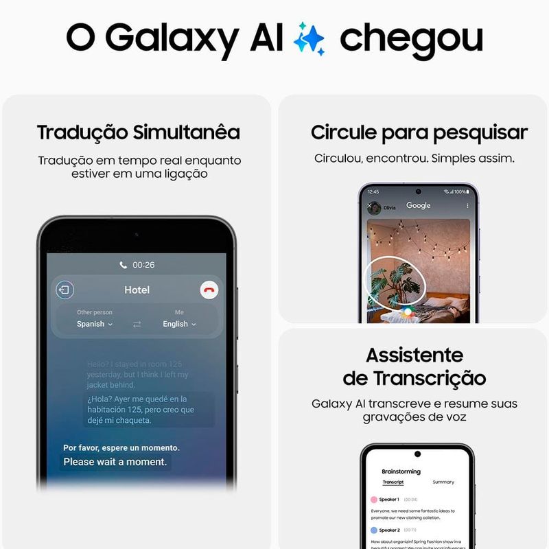 Eletrônicos e TecnologiaTelefoniaSmartphonesSmartphone Samsung Galaxy S23 FE 5G 128GB, 8GB RAM, Câmera Tripla Traseira, Selfie de 10MP, Tela 6.4", Processador Exynos 2200 Octa Core - Grafite
