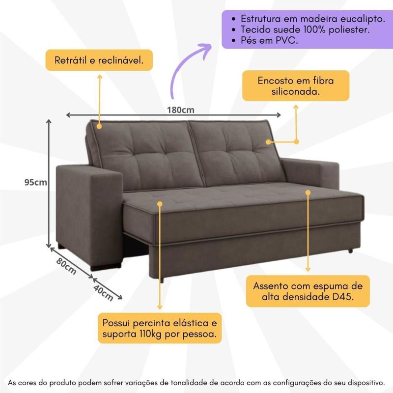 Casa e DecoraçãoMóveisSofáSofá 2 Lugares Retrátil e Reclinável 180cm Multimóveis CR45241