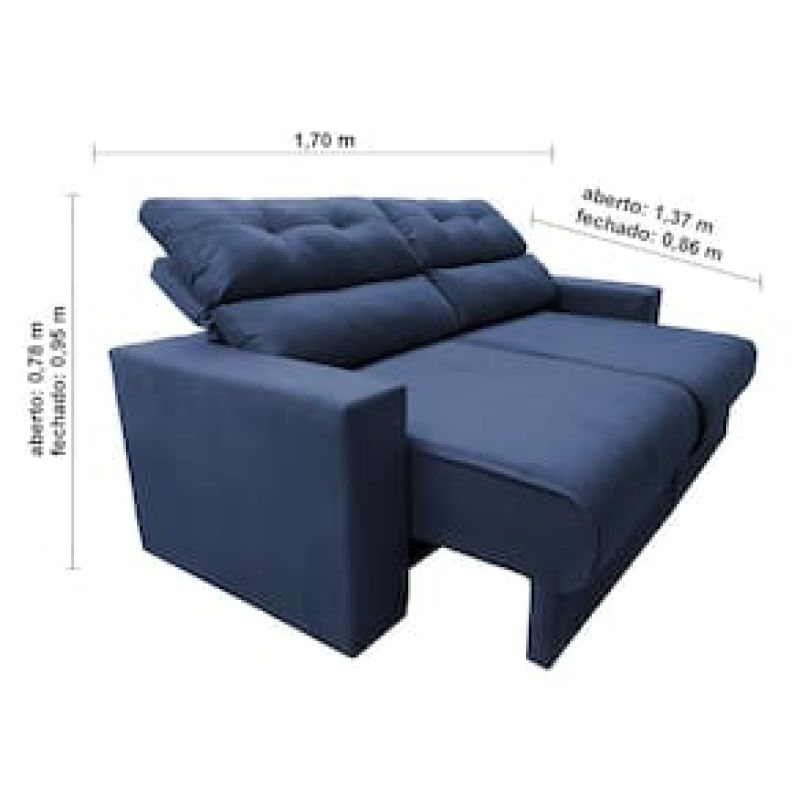 Casa e DecoraçãoMóveisSofáSofá 3 lugares Cama inBox Clean com assento Retrátil e encosto Reclinável em tecido Velusoft com 170 cm de largura