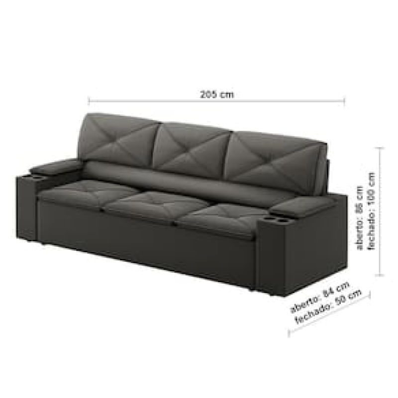 Sofá 3 lugares DDS Next Pop com Assento Retrátil e Encosto Reclinável em Velosuede com porta-copos - 205 cm de largura REF: 413661_Sicredi