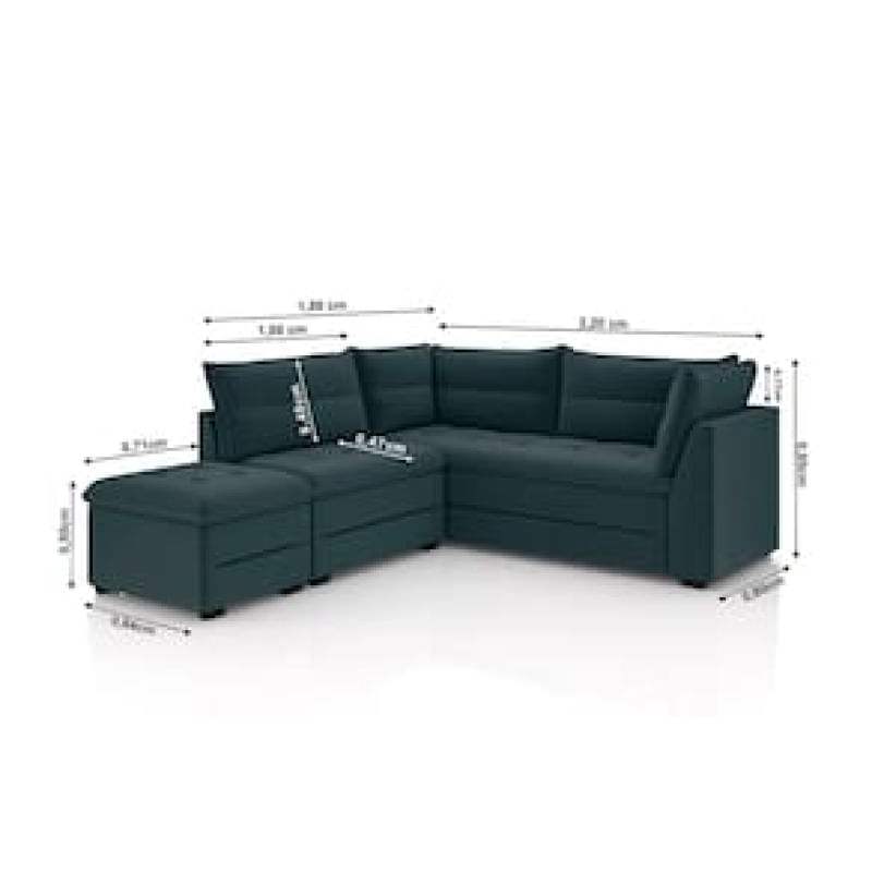 Casa e DecoraçãoMóveisSofáSofá Modular de Canto 4 Lugares Luizzi Quebec com Pufe e Revestimento em Suede 408cm de Largura