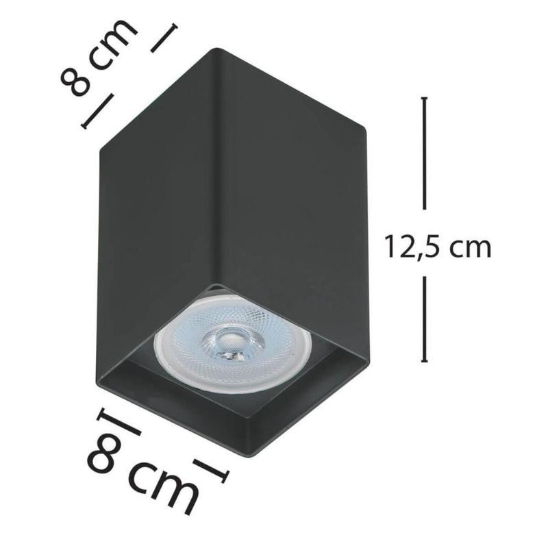 Spot Preto de Sobrepor Quadrado Bivolt Luminária de Teto E27 Área Interna Banheiro Quarto REF: 7898505470649