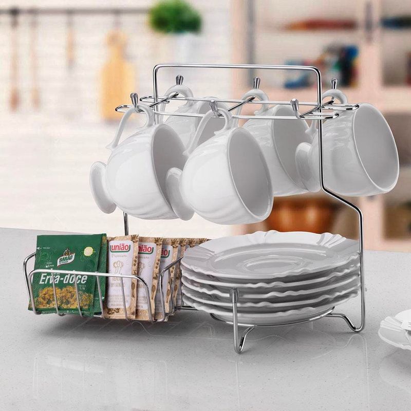 Casa e DecoraçãoUtilidades DomésticasCopos, Taças e CanecasSuporte para Xícaras Pires Cápsulas Café Utimil Cromado com 6 Ganchos 25x19x29,5cm