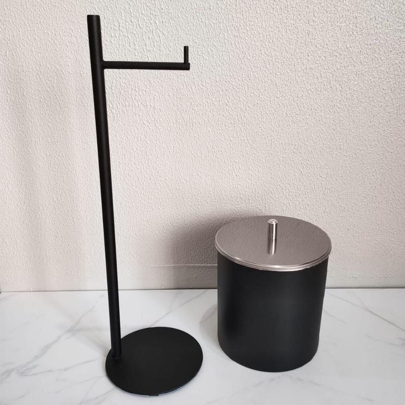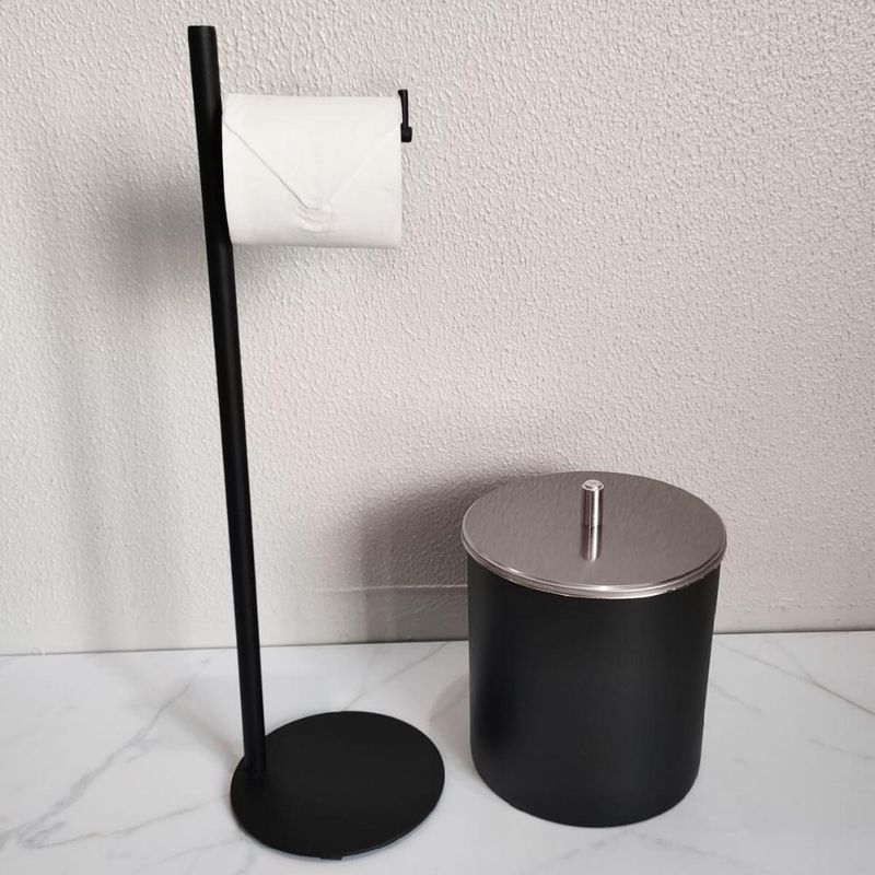 Casa e DecoraçãoUtilidades DomésticasAcessórios de BanheiroSuporte Porta Papel Higiênico Preto de Chão Papeleira Redonda Banheiro Lavabo