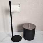 Suporte Porta Papel Higiênico Preto de Chão Papeleira Redonda Banheiro Lavabo REF: 7898529311423