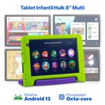 Tablet Infantil Hulk 8" Wi-Fi 6GB RAM 64GB Android 13 Octa-Core Câmeras 5MP e 2MP Bateria 4000mAh Multi - NB441 NB441 REF: 7908842854054