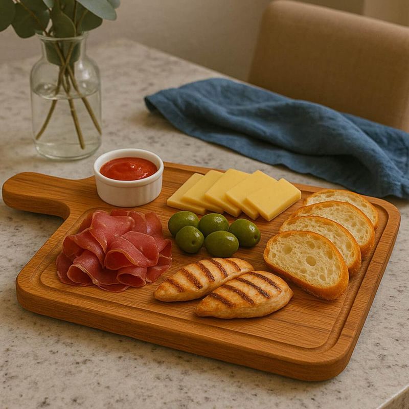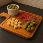 Tábua Teca 35x22cm com Cabo Área para Ramekin Servir Lanches Hambúrguer Petisqueira REF: 7898775140259
