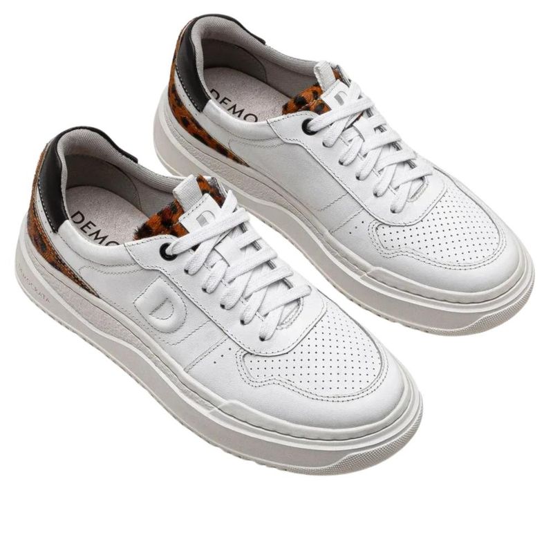Tênis Feminino Casual Democrata Block 616101 Branco/Onça REF: 7890827006070