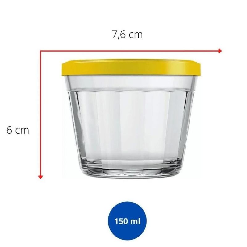 Casa e DecoraçãoUtilidades DomésticasTigela Pequena Pote Americano de Vidro 150ml Marinex com Tampa Plástica Colorida
