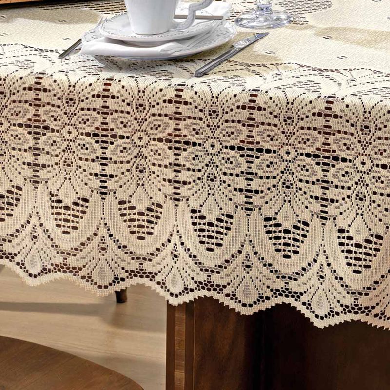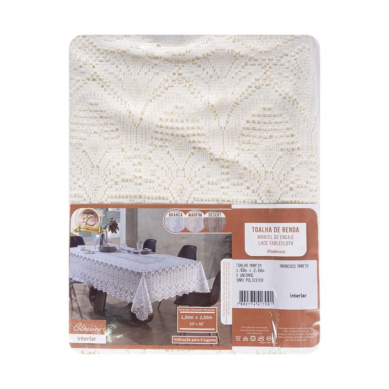 Toalha de Mesa Retangular 8 Lugares Renda Clássica Arabesco Interlar 150x250cm Marfim REF: 508031_Sicredi