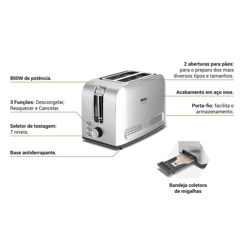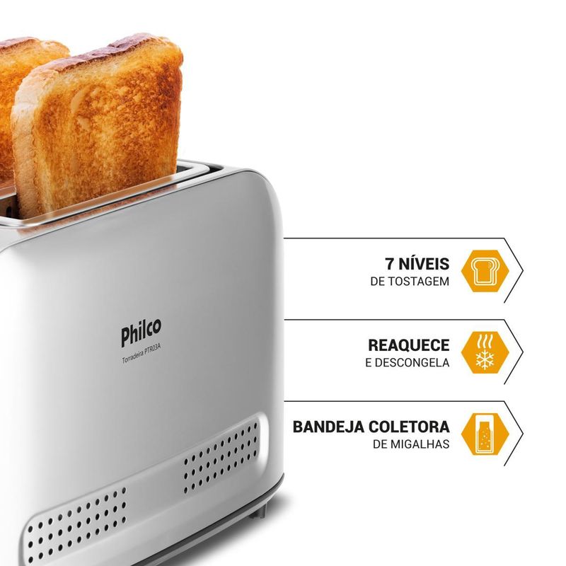 Torradeira Philco 7 Níveis de tostagem PTR03A 3 funções REF: 7891356120947