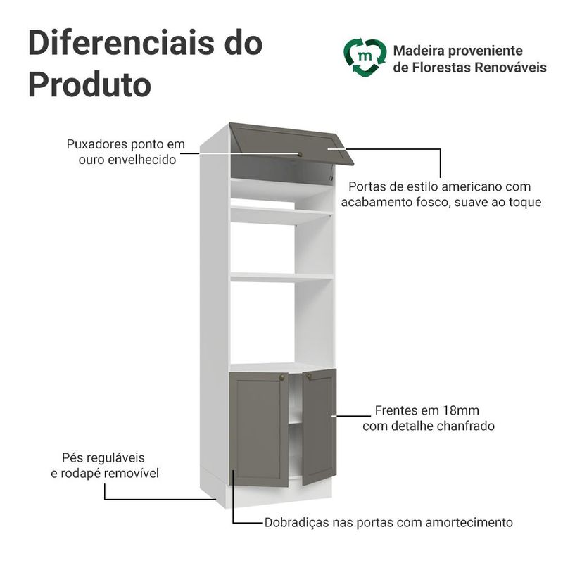 Casa e DecoraçãoMóveisArmário de CozinhaTorre Quente 70 cm 3 Portas Branco/Cinza Vik Madesa