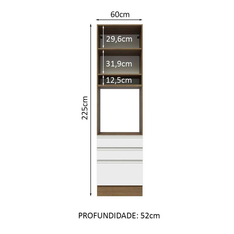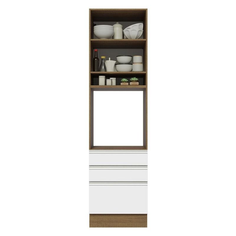 Torre Quente Madesa Glamy 60 cm 1 Porta 3 Gavetas - Rustic/Branco REF: 511847_Sicredi