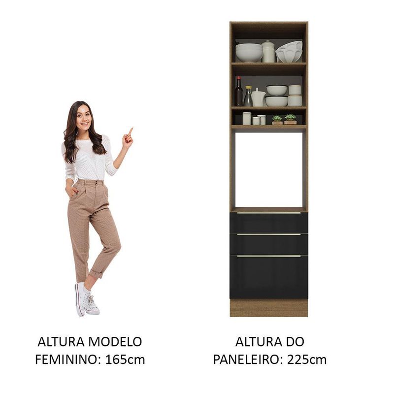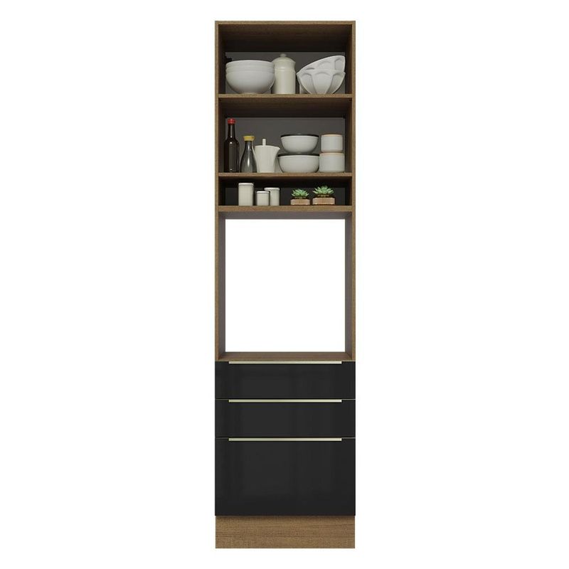 Casa e DecoraçãoMóveisArmário de CozinhaTorre Quente Madesa Lux 60 cm 1 Porta 3 Gavetas - Rustic/Preto