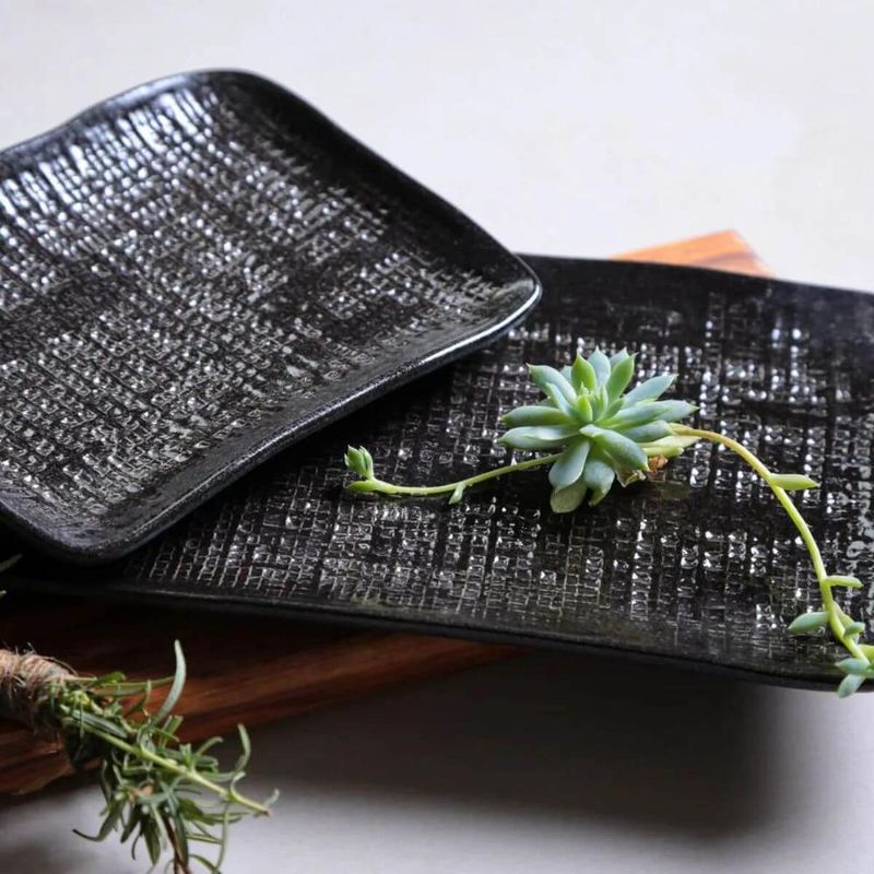 Casa e DecoraçãoUtilidades DomésticasAcessórios para ServirTravessa Cerâmica 27x17cm Juta Preto Matte Sushi Porto Brasil Servir Retangular Mesa Posta