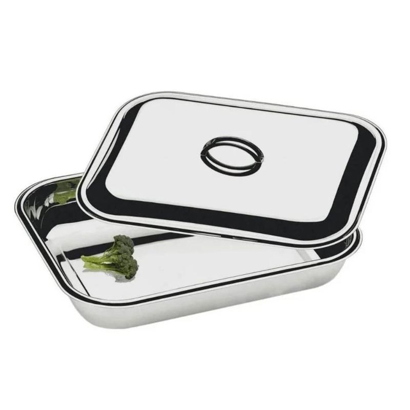 Casa e DecoraçãoUtilidades DomésticasAcessórios para ServirTravessa de Inox com Tampa 5L Funda 37x28,5x11cm Assadeira Grande para Buffets