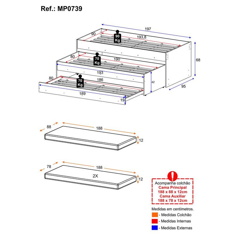 Casa e DecoraçãoMóveisCamaTricama com Colchão Incluso Multimóveis Branco
