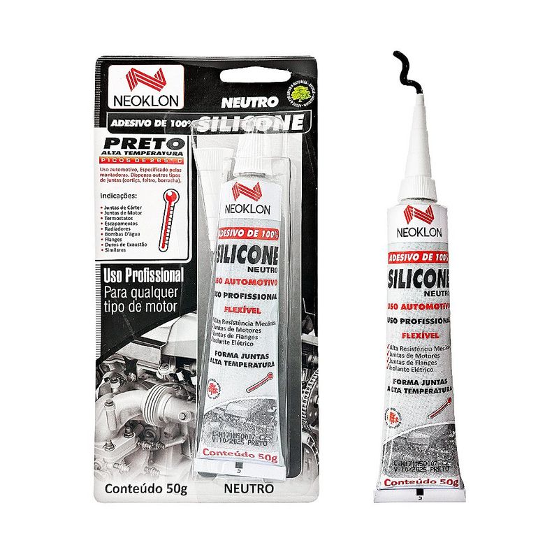 Tubo Silicone Neutro / Alta Temperatura / Neoklon / 50g / Preto REF: 7898512430308
