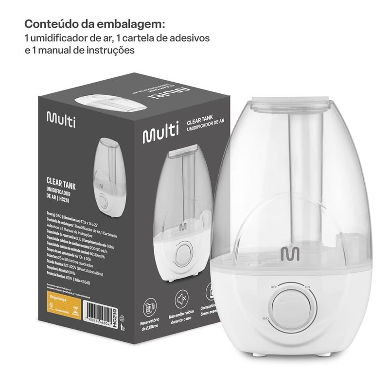 Umidificador de Ar Clear Tank 2,1Litros Bivolt Automático Multi Saúde HC631E REF: 7899548513911