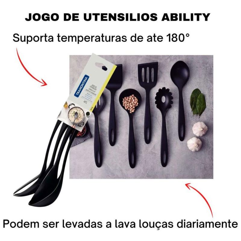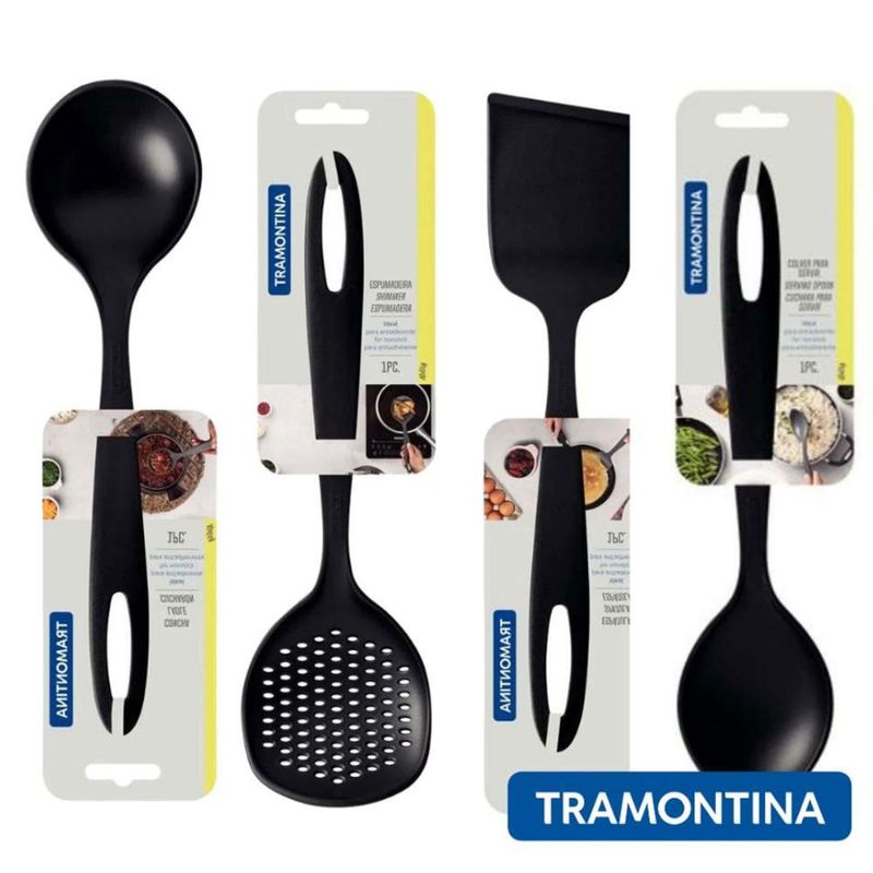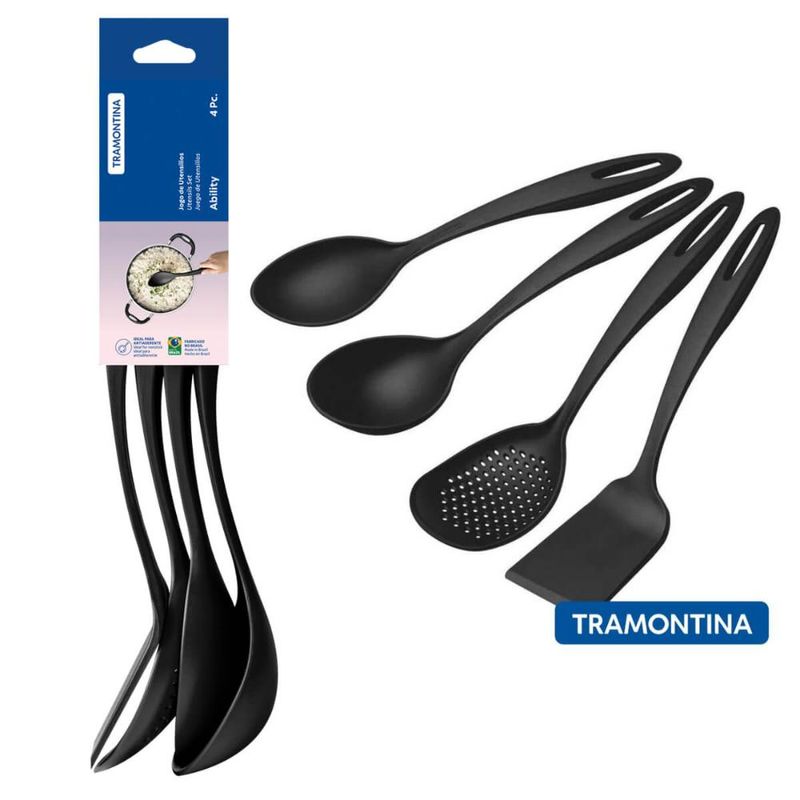 Utensílios de Cozinha Concha Colher Espátula Nylon Tramontina Preto Ability 4 Peças REF: 7891112284869
