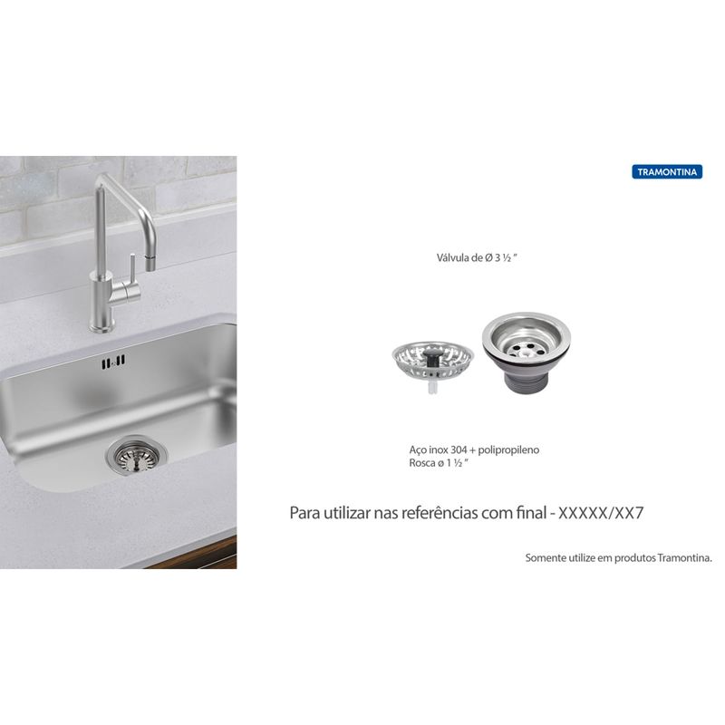 Ferramentas e ConstruçãoConstruçãoMateriais HidráulicosVálvula Tramontina Econômica para Pias Cubas e Tanques 3 1/2" sem Escape em Aço Inox e Polipropileno