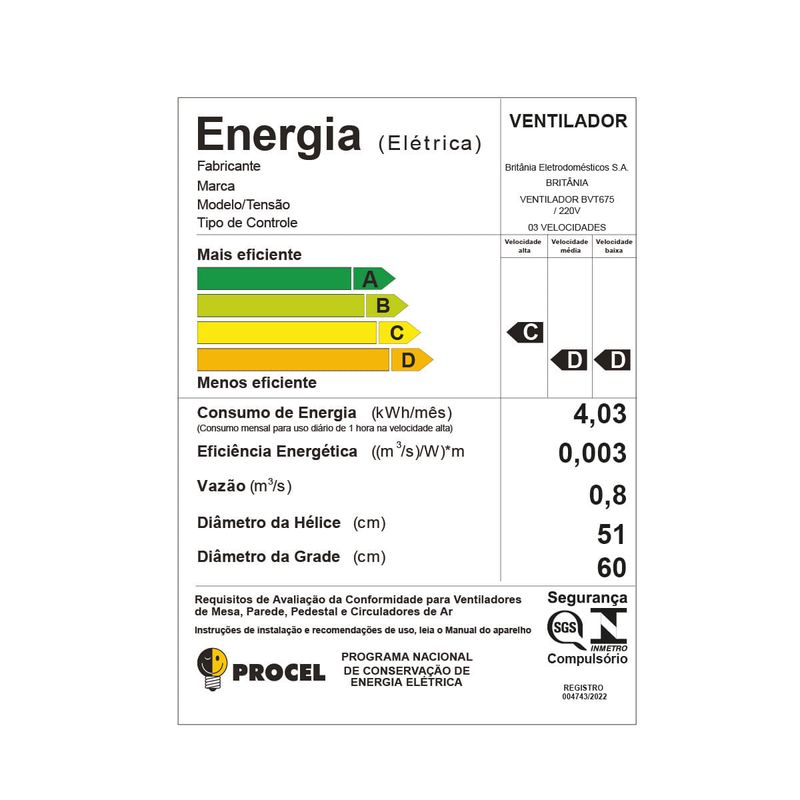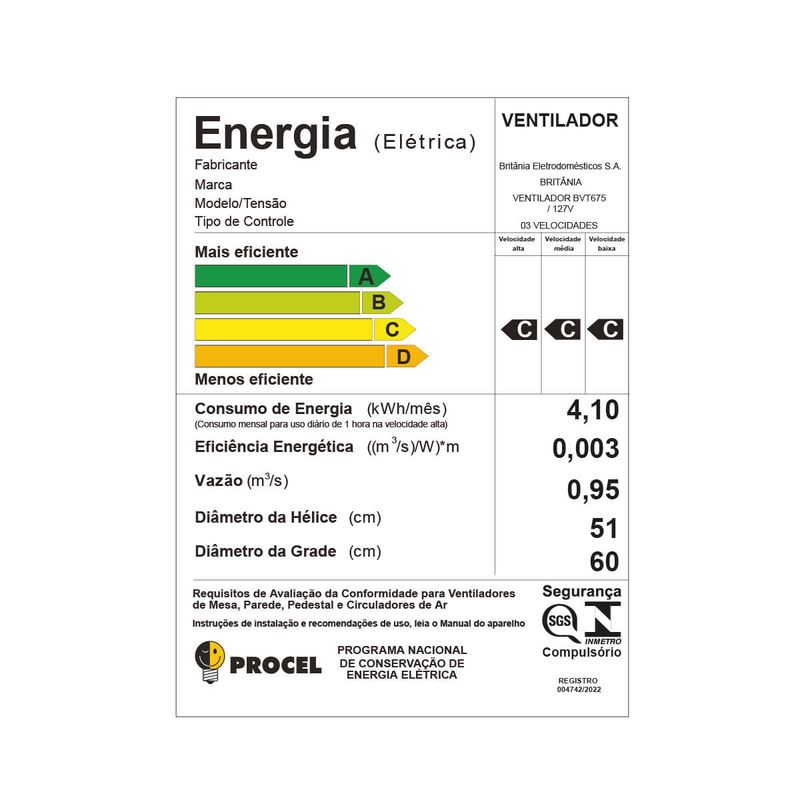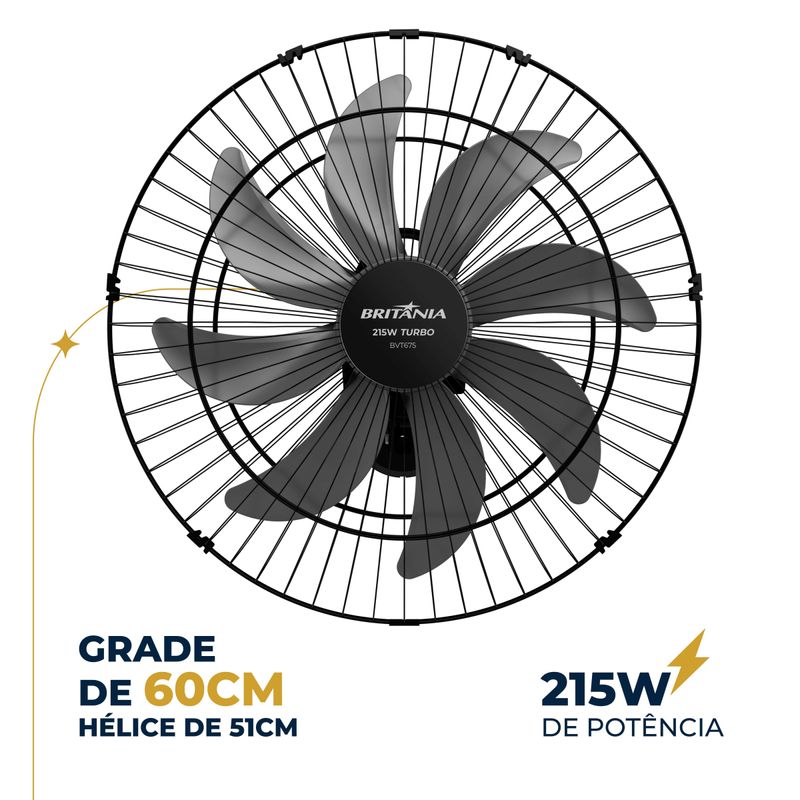 Ventilador de Parede Britânia 60cm 8 Pás Turbo BVT675 REF: 769511_Sicredi
