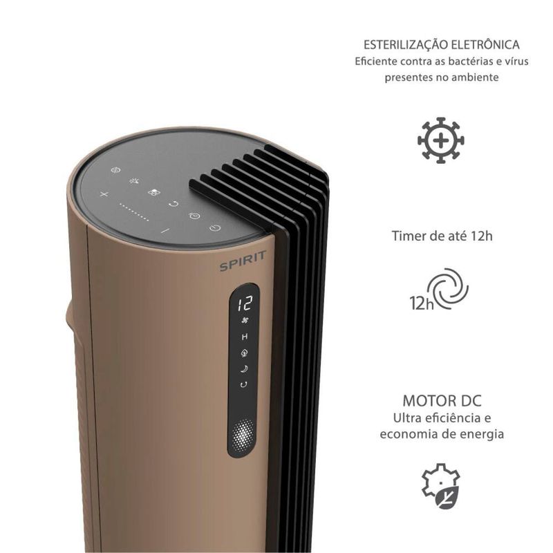 Ventilador de Torre 110cm Spirit Esterilizador com 12 velocidades, Controle Remoto e Timer de até 12 horas, Marrom 220V REF: 7899836926171