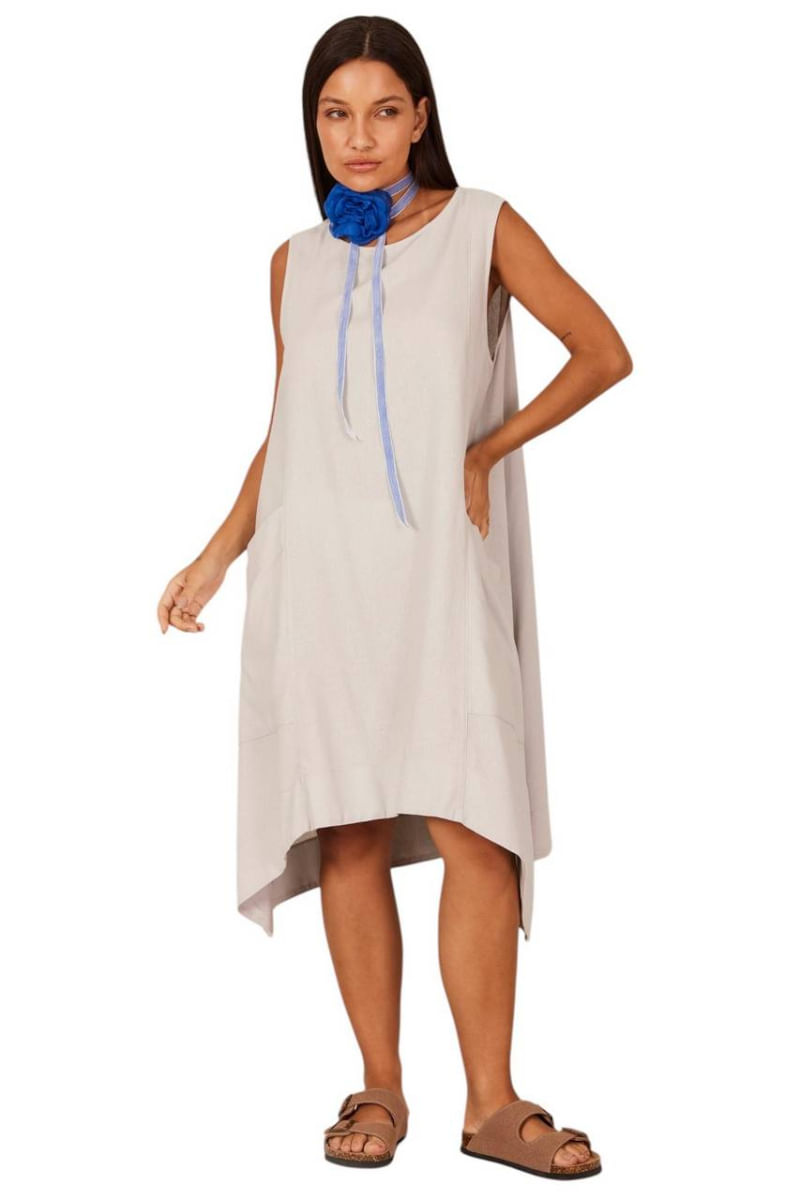 Vestido Curto De Linho Regata Cinza Claro Yacamim C25 REF: 742651_Sicredi