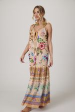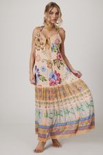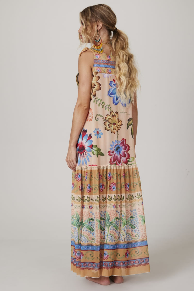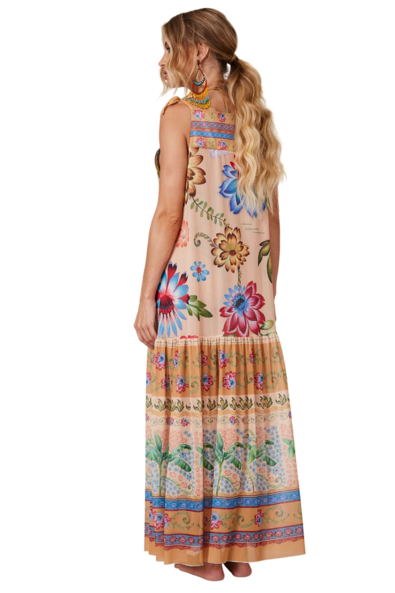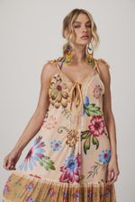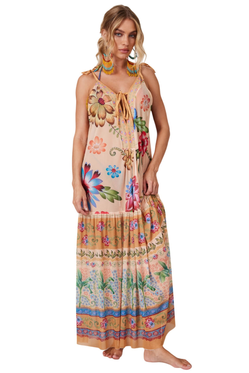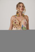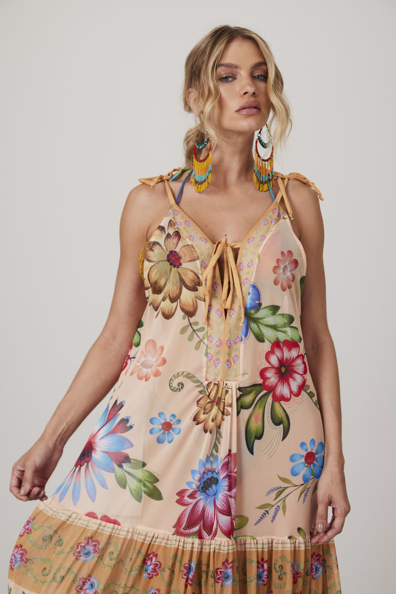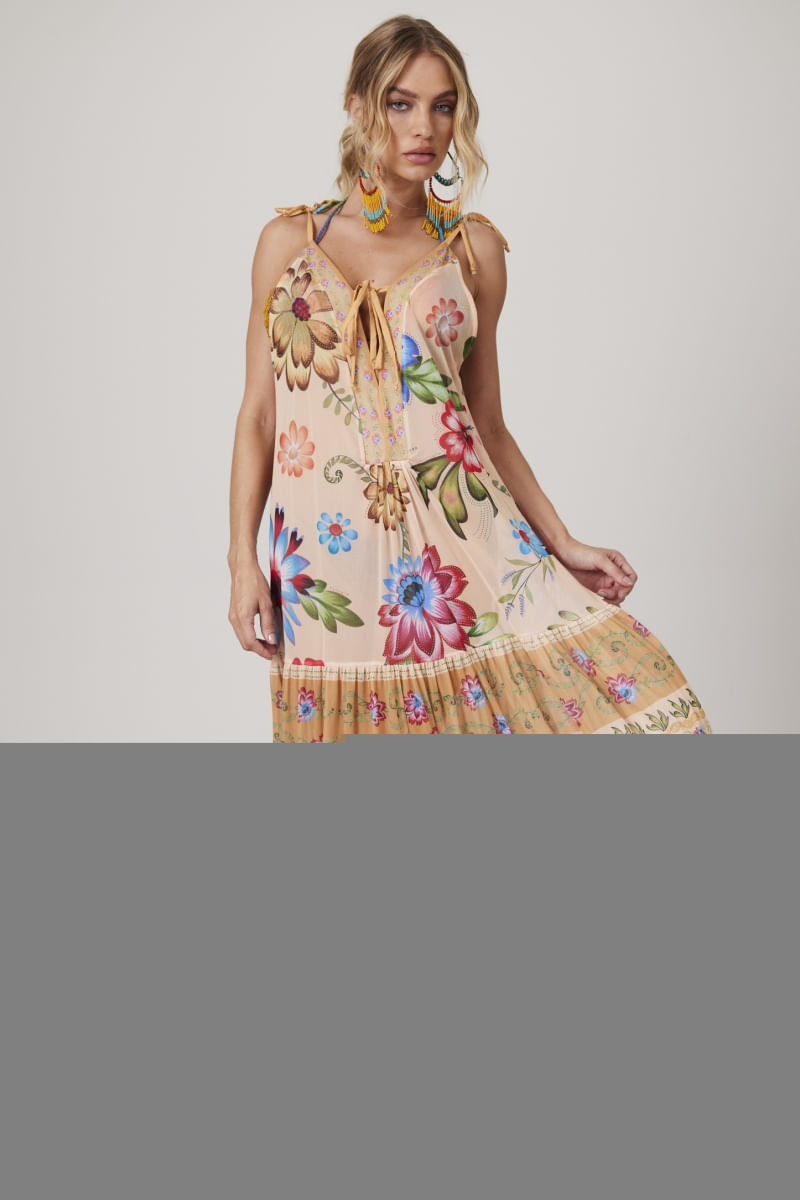 Vestido Midi De Tule Com Alças De Amarrar Laranja Estampado Yacamim Q8 REF: 742449_Sicredi