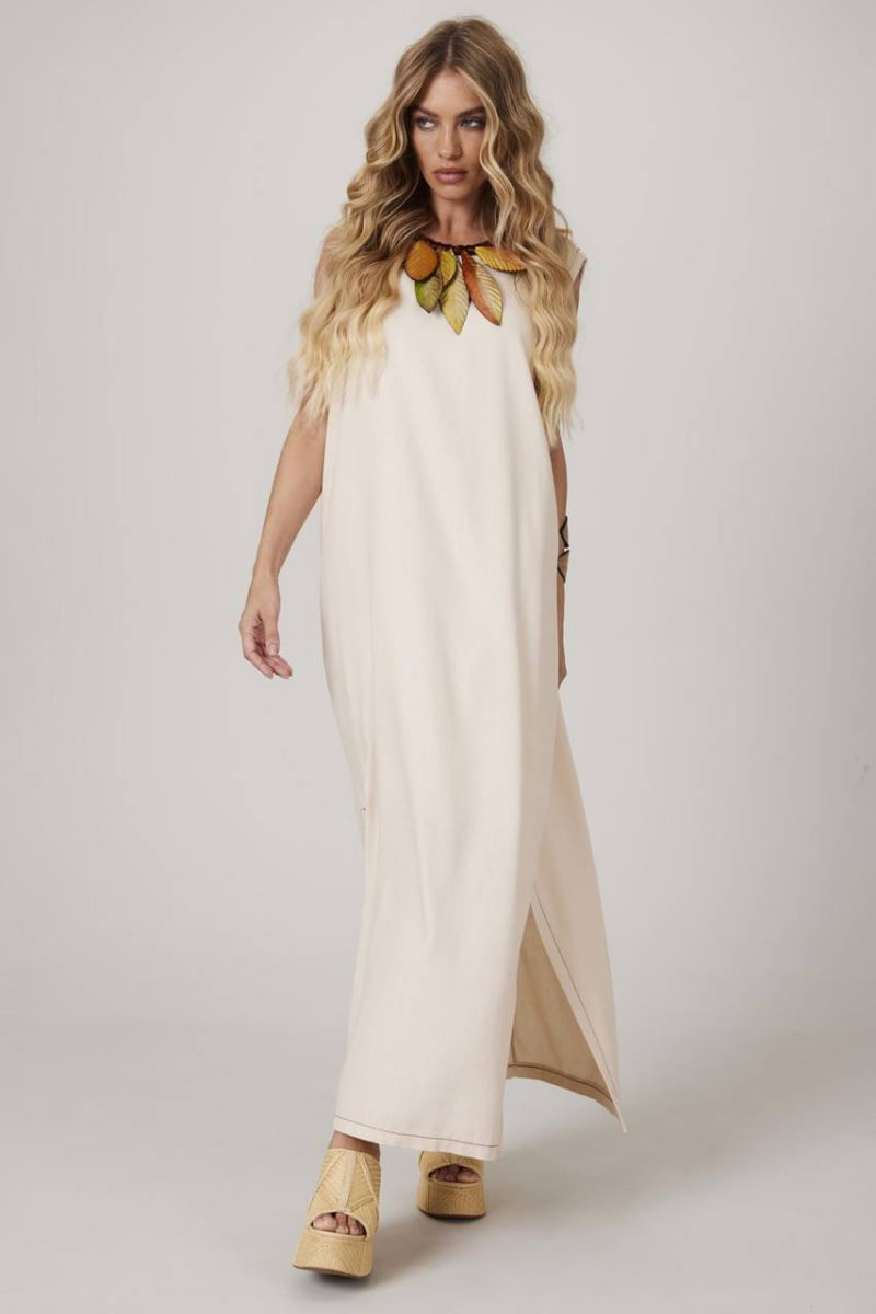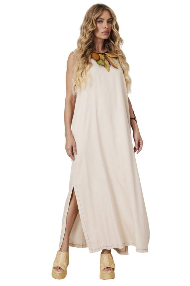 Vestido Regata Linho Midi Bege Yacamim E24/25 REF: 742417_Sicredi