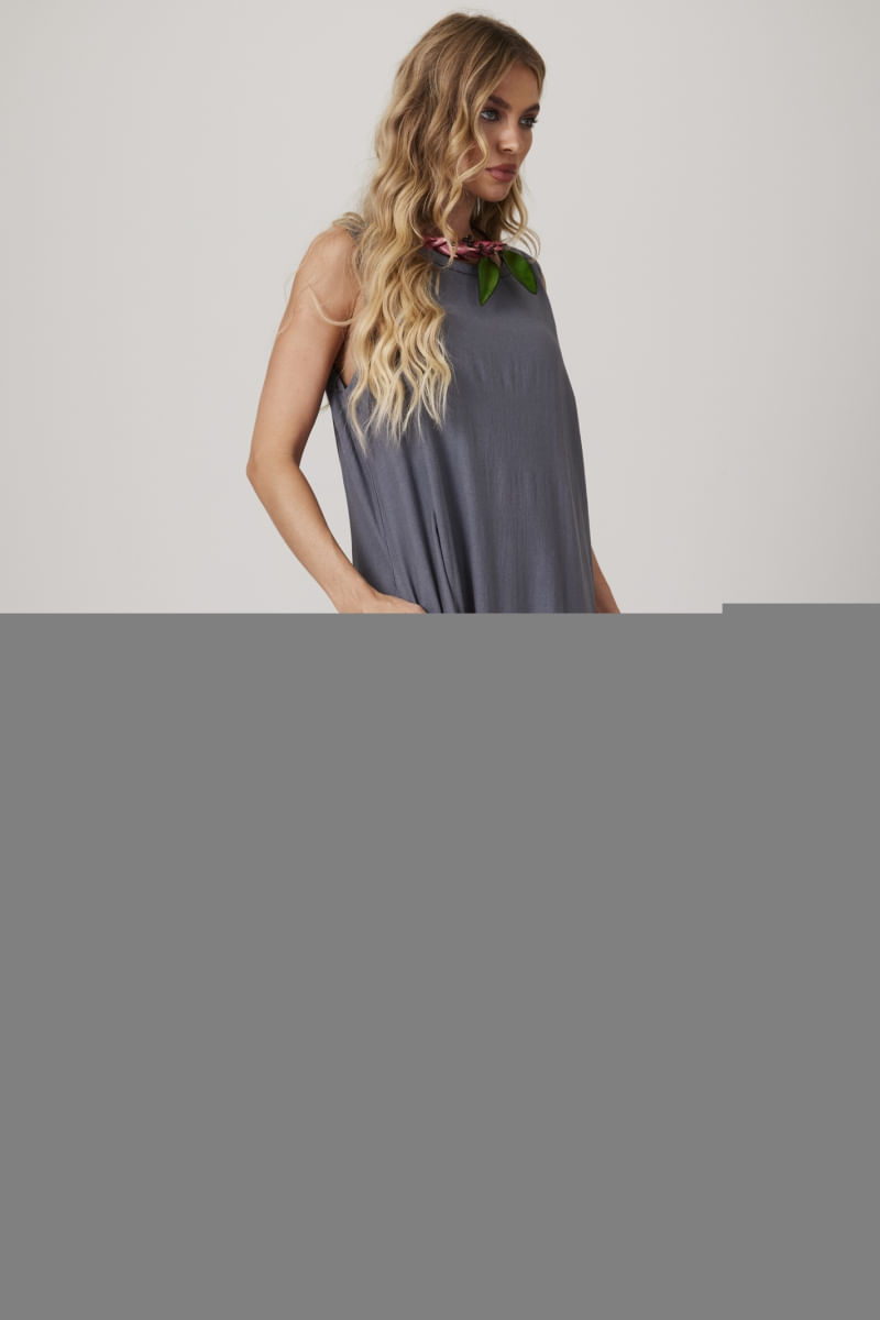 Vestido Regata Linho Midi Cinza Escuro Yacamim D20 REF: 742418_Sicredi