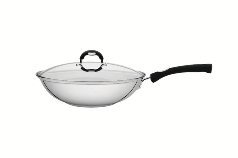 Wok Tramontina Astro Silicone 28cm em Inox com Tampa de Vidro REF: 7891116169421