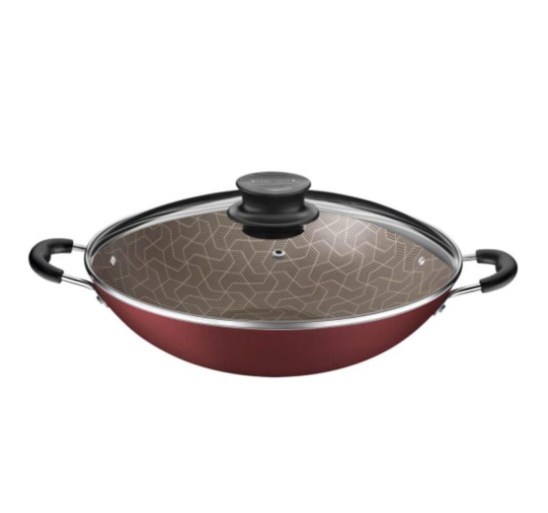 Wok Tramontina Paris 32cm em Alumínio com Revestimento Antiaderente Vermelha e Tampa de Vidro REF: 7891112298699